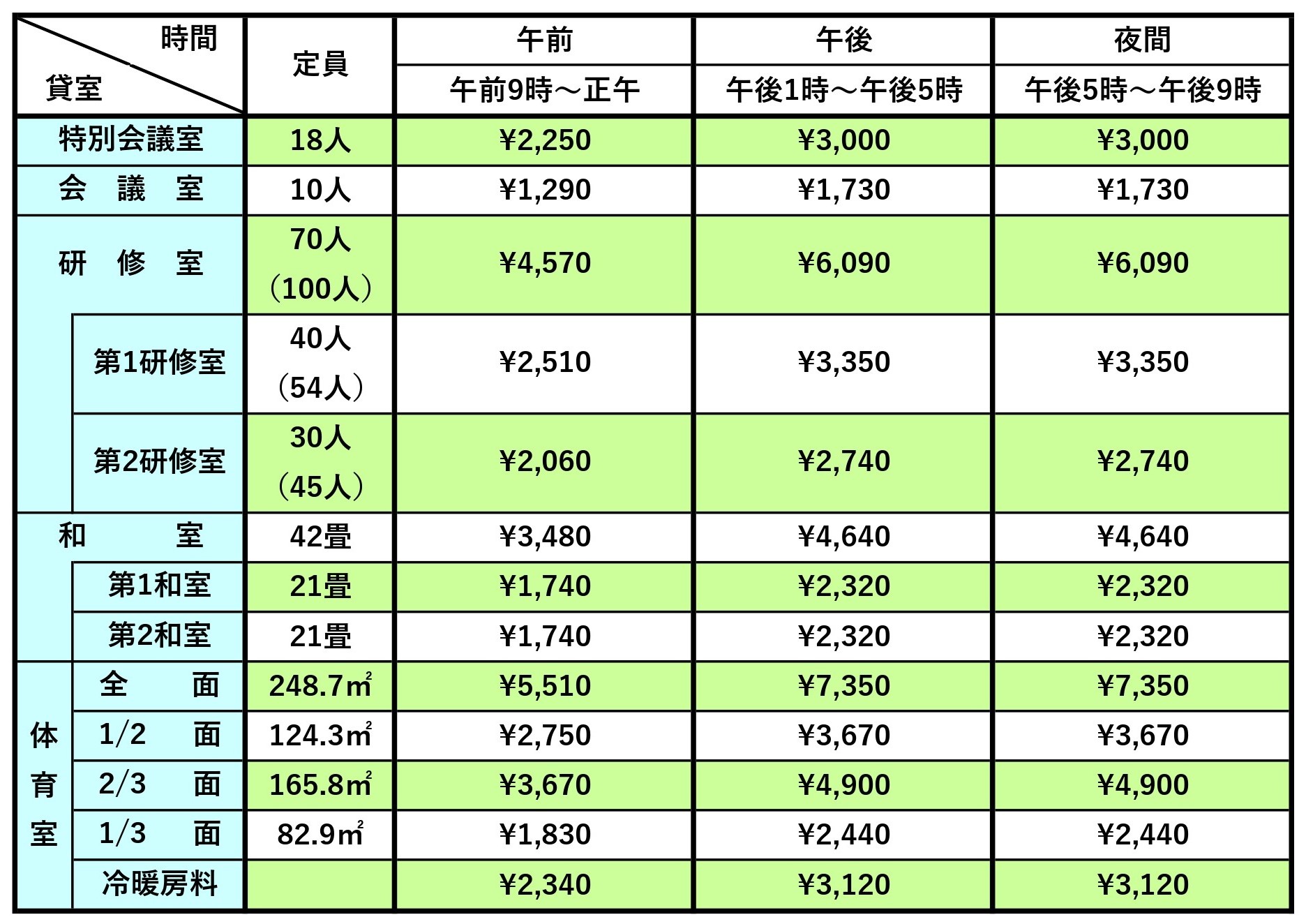 | ●冷暖房料 | 9:00~12:00 | 3,810円(R8年4月~2,340円) |